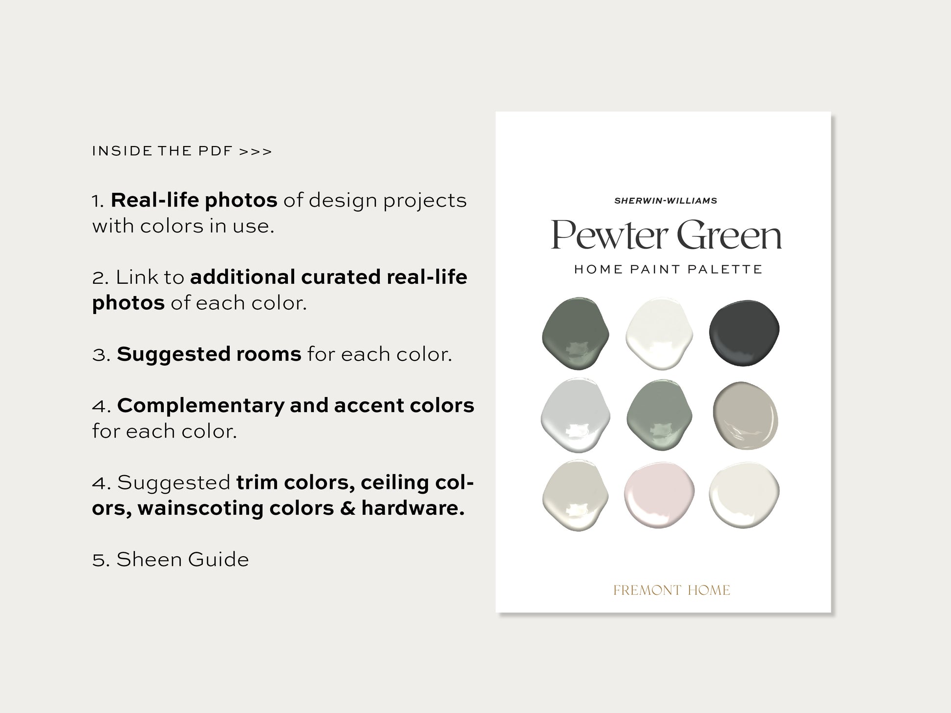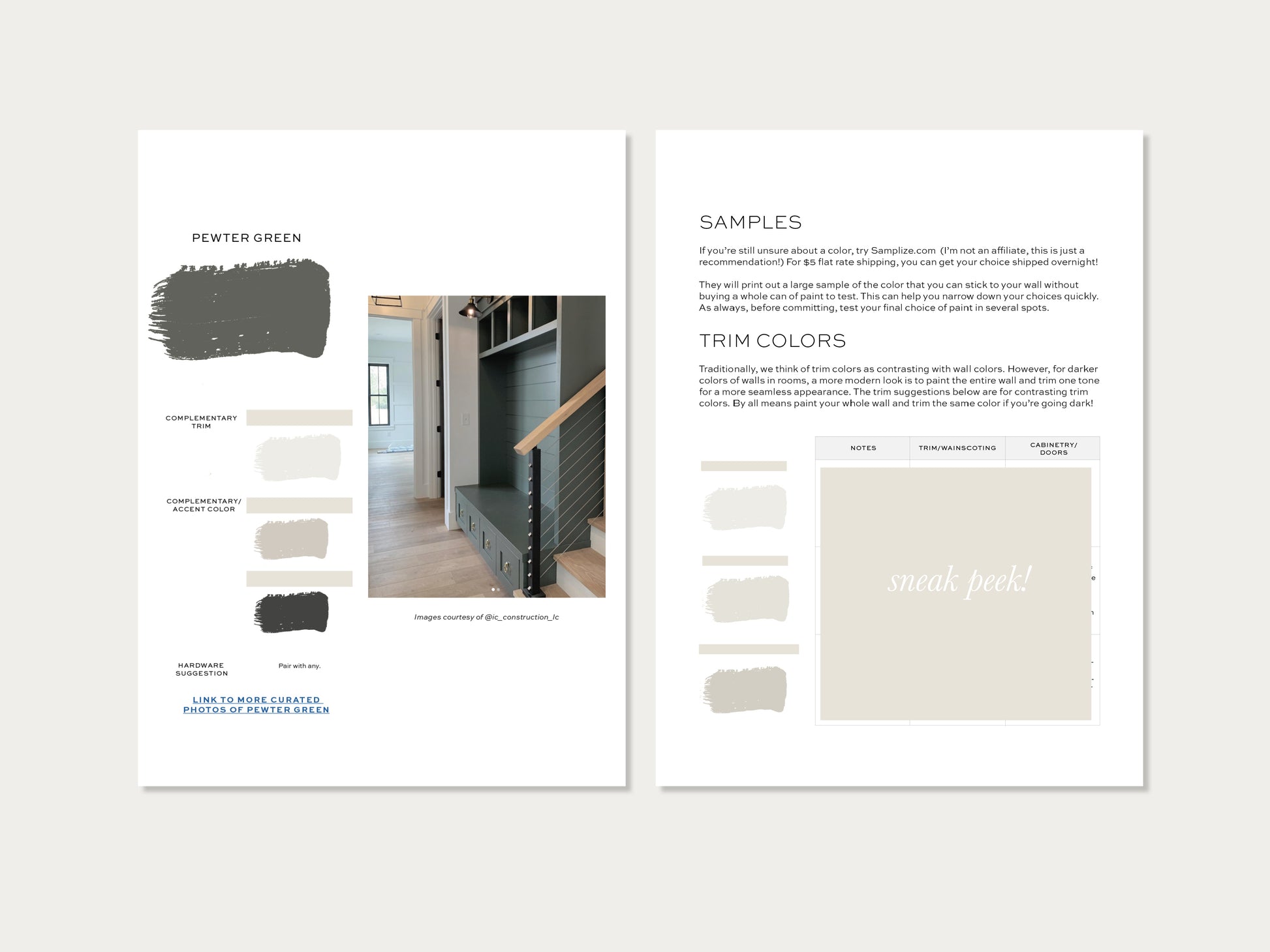Looking for the perfect coordinating colors for your home or for an existing color in your home? This digital color guide will help you do just that! The palette includes 9 colors with complementary undertones; including color suggestions for different rooms, a coordinating trim/ceiling color, and a few other light neutral options for different lighting situations.